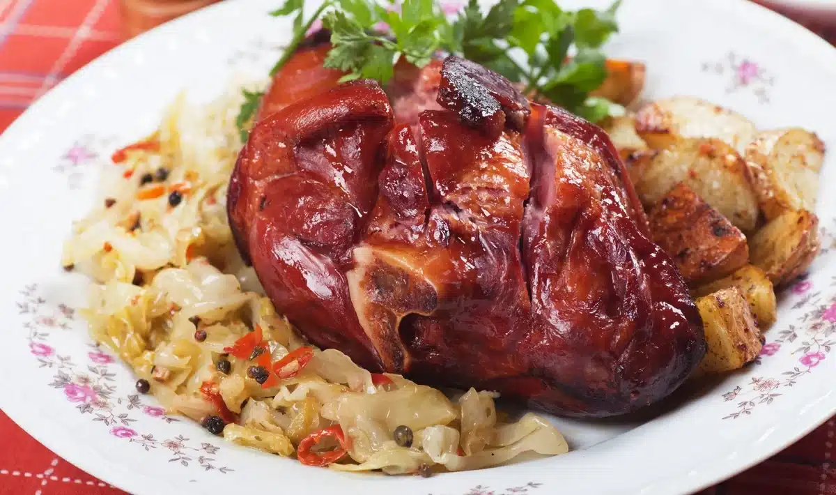 Keine Ideen für das Mittagessen? Hier ist unser Vorschlag: gebratene Schweinehaxe auf Kohl
