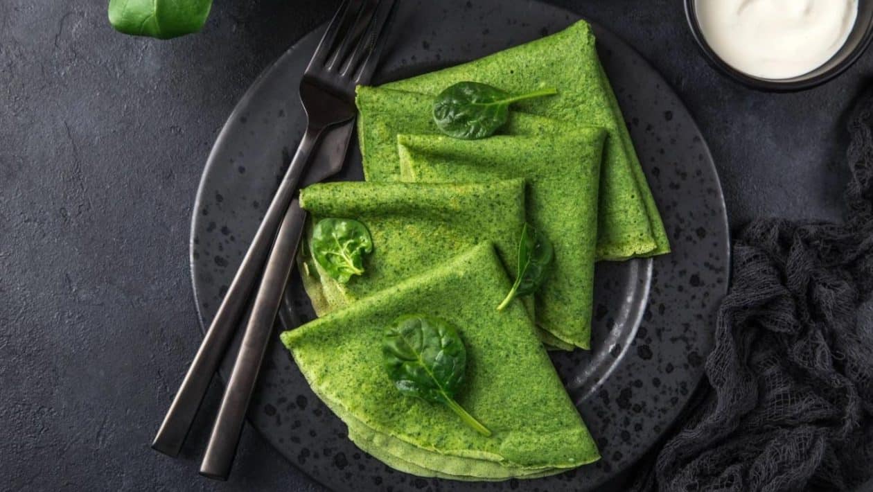 Spinatpfannkuchen sind eine tolle herzhafte Variante des süßen Klassikers. Die Zubereitung ist gar nicht so schwer, man hat sie schnell fertigund Sie werden sie auf jeden Fall öfter machen wollen. Darüber hinaus enthalten diese Pfannkuchen äußerst gesunden Spinat, der reich an wichtigen Vitaminen istwas Ihr Körper gerade braucht, und auch