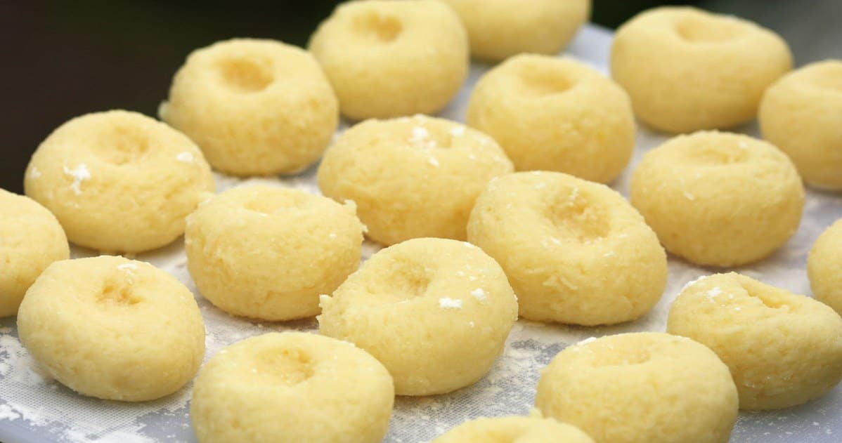 Daher lohnt es sich, mit einem einfachen Trick die perfekte Menge Mehl hinzuzufügen. Sobald die Kartoffeln gekocht und püriert sind, Im Topf glatt streichen und dann in vier gleiche Teile teilen.