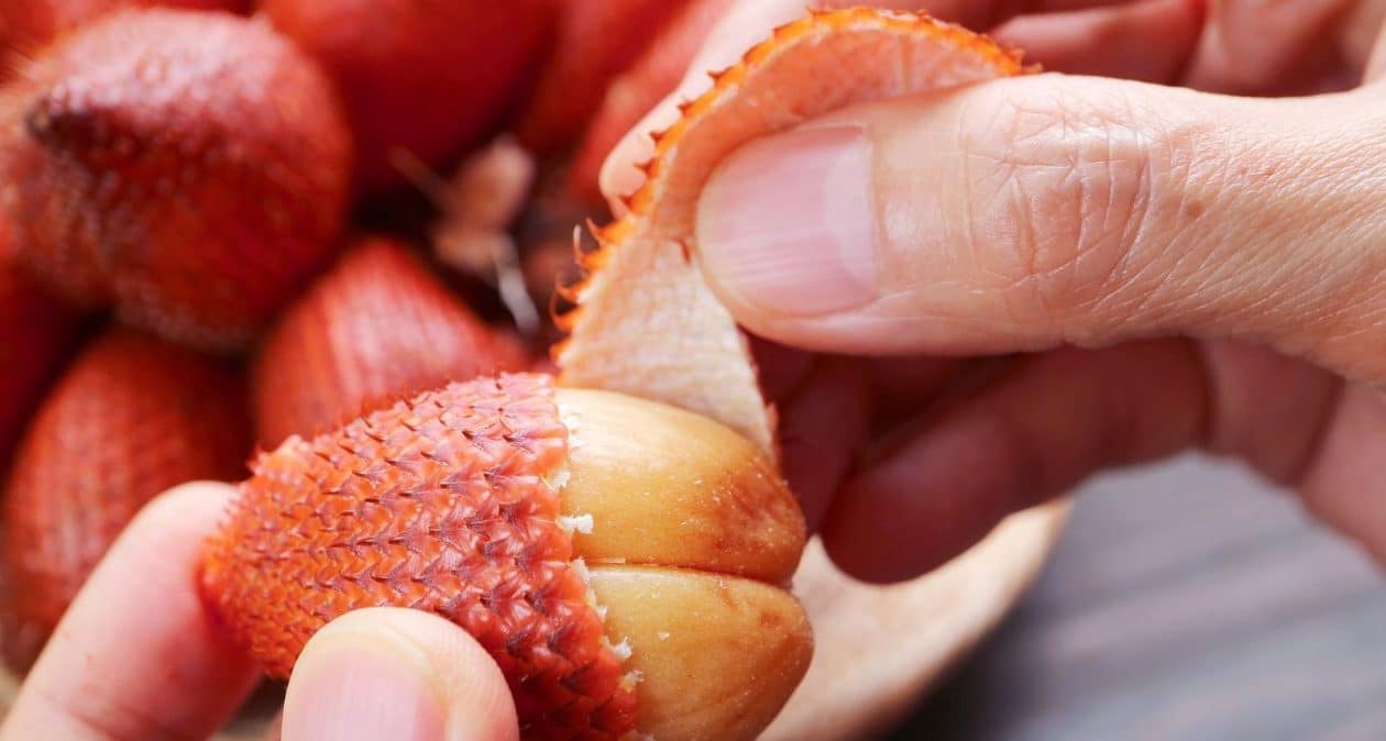 Eine Frucht, die sich im Ausland enormer Beliebtheit erfreut, ist Schlangenfruchtauch Schlangenfrucht genannt. Er kommt aus Asieninsbesondere aus den südöstlichen Regionen, also unter anderem aus Indonesien, Malaysia, Thailand. Die Früchte wachsen auf Palmen und werden in Büscheln gesammelt.