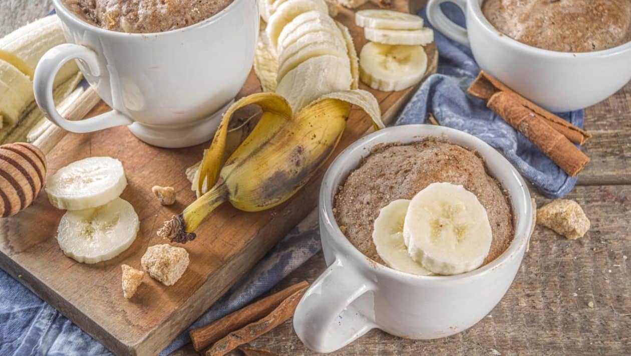Haben Sie eine Vorliebe für Naschkatzen? Dieses aus drei Zutaten bestehende Fitness-Dessert können Sie in 2 Minuten in der Mikrowelle „backen“.