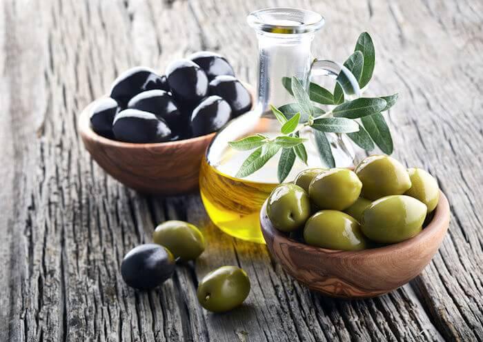 Frische Oliven eingelegt in Knoblauch oder pikantem Öl.