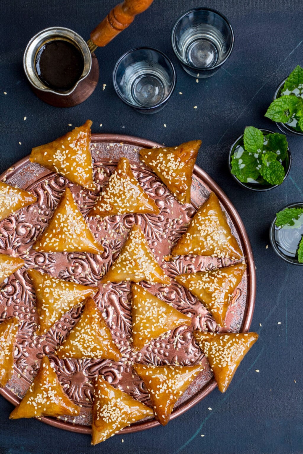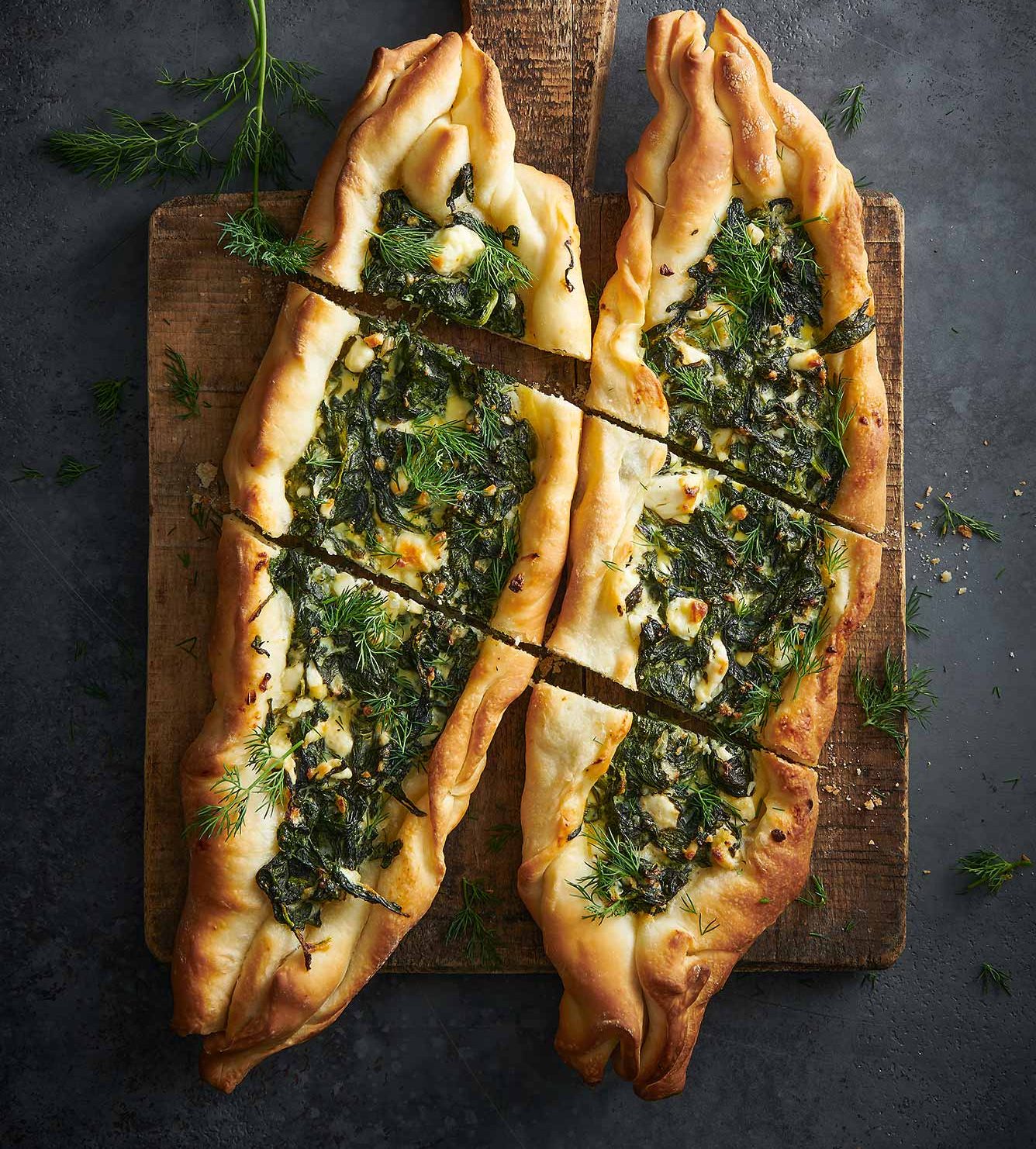 Kleine Teigschiffchen belegt mit Hackfleisch, Spinat und Schafskäse oder auch nur Schafskäse. (Kombinierbar)