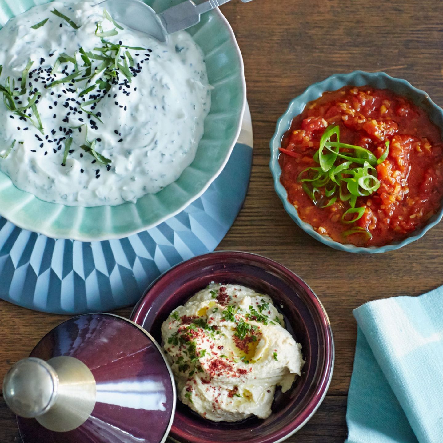 Hummus Dip, Obergingen Dip, Tsatsiki, Salsa, Paprika Tomaten Dip, Oliven Dip, Kräuter Butter uvm.
